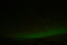 Ruszamy. Wyjeżdżamy z miasta. Dowiadujemy się, że jedziemy na górę, gdzie zderzają się 3 prądy powietrzne - z północy znad oceanu, z południa znad Bałtyku i ze wschodu. Zatem jakakolwiek prognoza pogody w tym miejscu nie ma sensu - warunki zmieniają się szybko i mogą być zupełnie inne niż w reszcie regionu. Dlatego też podczas naszej dzisiejszej i wczorajszej mailowej korespondencji pisano nam, że nie mamy patrzeć na prognozę pogody. Podobnie prognozy Aurora Service nie zawsze się sprawdzają. Np. w dniu naszego przyjazdu, w środę, Aurora Service pokazywała minimalne szanse na zorzę. Tymczasem można było podziwiać najrzadszą, białą aurorę. Wczoraj rzekomo szanse były większe, tymczasem w praktyce zorzy nie zaobserwowano.
