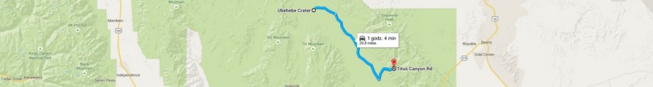 Ruszamy na północ doliny, w kierunku Unhebe Creater. Po drodze mijamy po prawej stronie wyjazd z Titus Canyon. Postanawiamy podjechać pod ten wyjazd w drodze powrotnej.