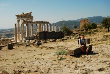Widok z góry niesamowity... Wkraczamy znów na teren starożytnego miasta. Bardzo dobrze zachowane mury, kolumny, termy... Pani Kasia prowadzi nas do miejsca, gdzie stał kolejny z 7 cudów świata - pomnik Zeusa. Opisuje, jak niemieccy badacze statkami wywieźli płyty pomnika i skarby Pergamonu. Dziś możemy je podziwiać w Muzeum Pergamonu w Berlinie. Bez wątpienia największe wrażenie wywołuje teatr, ty razem grecki - najbardziej stromy i największy. Po prostu niesamowity!