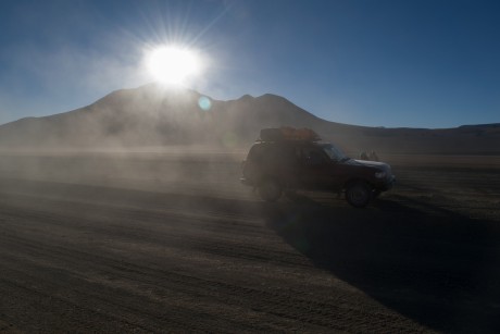 Oj jak ciężko wyjść spod ciepłego koca... Na śniadaniu siadamy wszyscy przy solnym stole i jak zwykle zajadamy się kanapkami z marmolada, nutellą i serem. Sprawnie ładujemy bagaże na dach samochodu. W sumie to już nie ogarniamy, co mamy dziś zobaczyć. Do tej pory widzieliśmy już tak wiele, że nie oczekujemy niczego więcej. Tymczasem kierowca zawozi nas na pole geotermalne Sol de la Mañana.